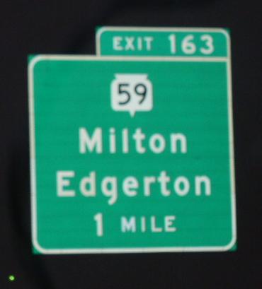 WB WI St Rt 59 at the Rock/Walworth County Line. EB WI St Rt 59 at RCH KK. EB WI St Rt 59 east of Milton. EB WI St Rt 59 at south RCH M. EB WI St Rt 59 east of WI St Rt 26. EB WI St Rt 59/SB BUSN WI St Rt 26 west of WI St Rt 26. EB WI St Rt 59/SB BUSN WI St Rt 26 east of Janesville Street. A guide marker in Milton. EB WI St Rt 59/SB BUSN WI St Rt 26 near High Street in Milton. EB WI St Rt 59/SB BUSN WI St Rt 26 near Storrs Lake Road in Milton. A guide marker on EB WI St Rt 59. EB WI St Rt 59 near Park in Milton. EB WI St Rt 59 near Plum in Milton. A BGS on NB I-39/WB I-90. A BGS on SB I-39/EB I-90. A BGS on NB I-39/WB I-90. A BGS on NB I-39/WB I-90. A junction marker on WB U.S. Rt. 14. Photo from: Paul Dienhart A guide marker on WB U.S. Rt. 14. Photo from: Paul Dienhart A guide marker on WB U.S. Rt. 14. Photo from: Paul Dienhart A guide marker on WB U.S. Rt. 14. Photo from: Paul Dienhart A guide marker on WB U.S. Rt. 14. Photo from: Paul Dienhart
