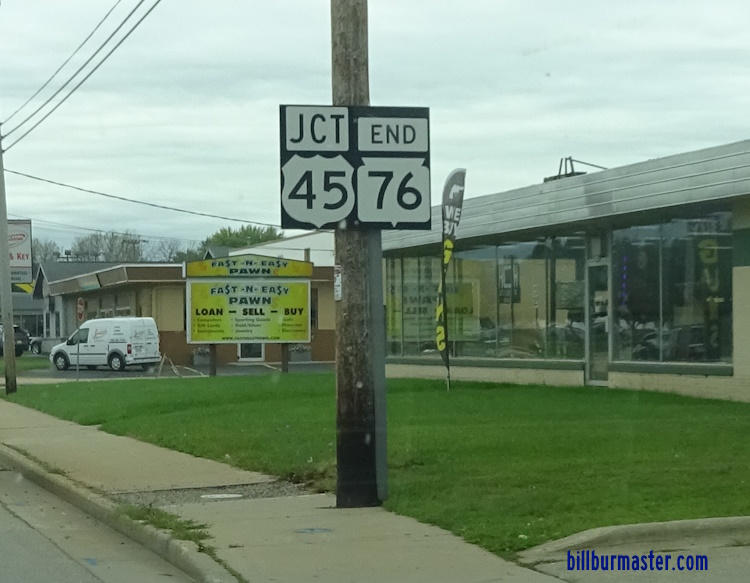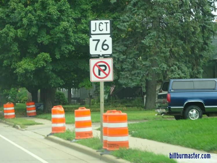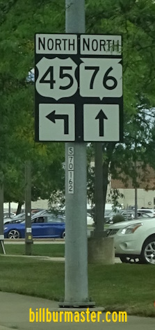The southern end of WI St Rt 76. The southern end marker. A junction marker on NB U.S. Rt. 45. NB WI St Rt 76 south of Snell. A BGS on NB I-41/U.S. Rt. 41.