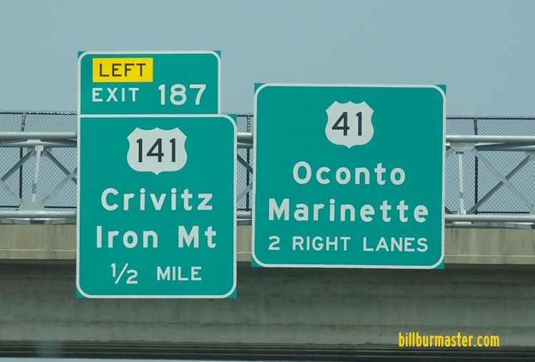 U.S. Rt. 41 is multi-plexed in Oconto County. U.S. Rt. 141, from the Oconto/Brown County Line, to near Abrams.