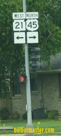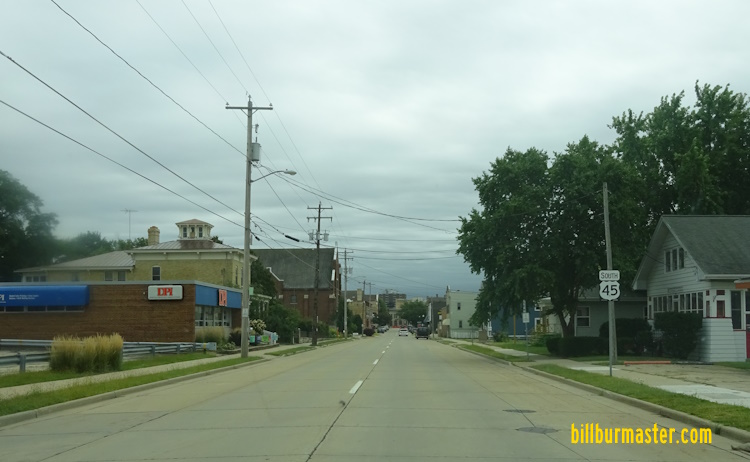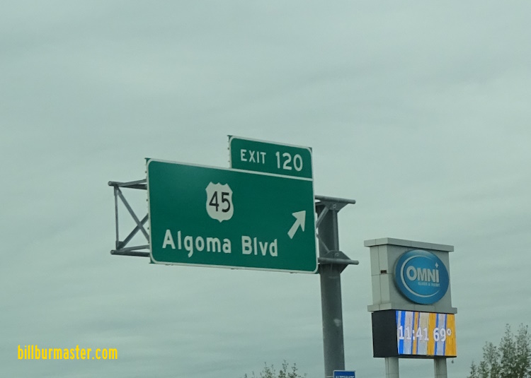A BGS on SB I-41/U.S. Rt. 41. NB U.S. Rt. 45 at I-41/U.S. Rt. 41. NB U.S. Rt. 45 south of I-41/U.S. Rt. 41. NB U.S. Rt. 45 north of WI St Rt 21. A junction marker on SB U.S. Rt. 45. NB U.S. Rt. 45 at New York Ave. in Oshkosh. NB U.S. Rt. 45 at WI St Rt 44. SB U.S. Rt. 45 south of Jackson Street in Oshkosh. SB U.S. Rt. 45 south of Division Street in Oshkosh.
