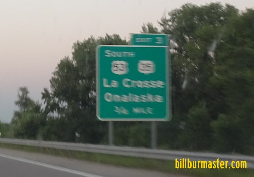 A junction marker on WB U.S. Rt. 14/NB U.S. Rt. 61. A junction marker on WB WI St Rt 16. A BGS on WB I-90/SB U.S. Rt. 53. A BGS on EB I-90. A BGS on WB I-90. A BGS on EB I-90. SB I-90/EB WI St Rt 157 at I-90. SB I-90/EB WI St Rt 157 north of I-90. A BGS on SB U.S. Rt. 53/EB WI St Rt 157. SB U.S. Rt. 53/EB WI St Rt 157 north of I-90. SB U.S. Rt. 53 north of WI St Rt 157. SB U.S. Rt. 53/WI St Rt 35 north of LCCH MH. SB U.S. Rt. 53/WI St Rt 35 south of WI St Rt 93. SB U.S. Rt. 53/WI St Rt 93 north of WI St Rt 35. SB U.S Rt 53/WI St Rt 93 south of LCCH T. SB U.S. Rt. 53/WI St Rt 93 near Council Bay. SB U.S. Rt. 53/WI St Rt 93 at the La Crosse/Trempealeau County Line.