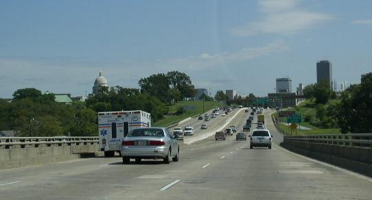 The Arkansas State Capital Building as seen from Interstate 630, Little Rock.